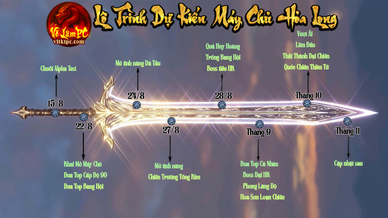 Lưu ý: Lộ trình có thể thay đổi tùy tình hình hiện tại của Server