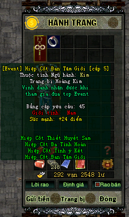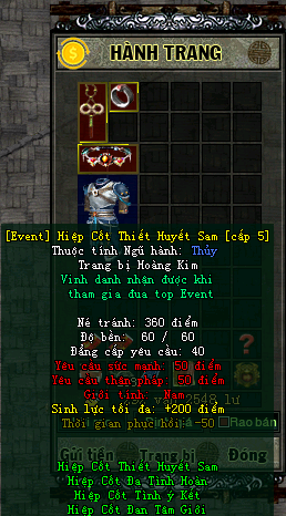 - Giới hạn: 500 vật phẩm/ 1 nhân vật