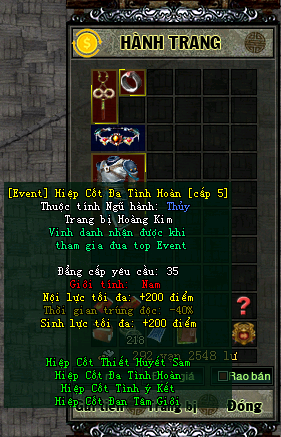 - Giới hạn: 500 vật phẩm/ 1 nhân vật