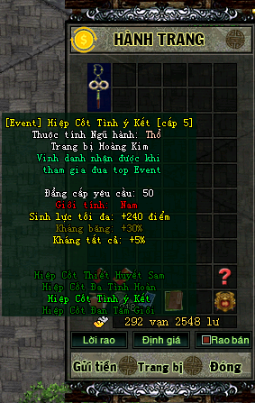 - 5000: Nhất Kỷ Càn Khôn Phù (+ 1skill hsd 15 ngày khoá vĩnh viễn)